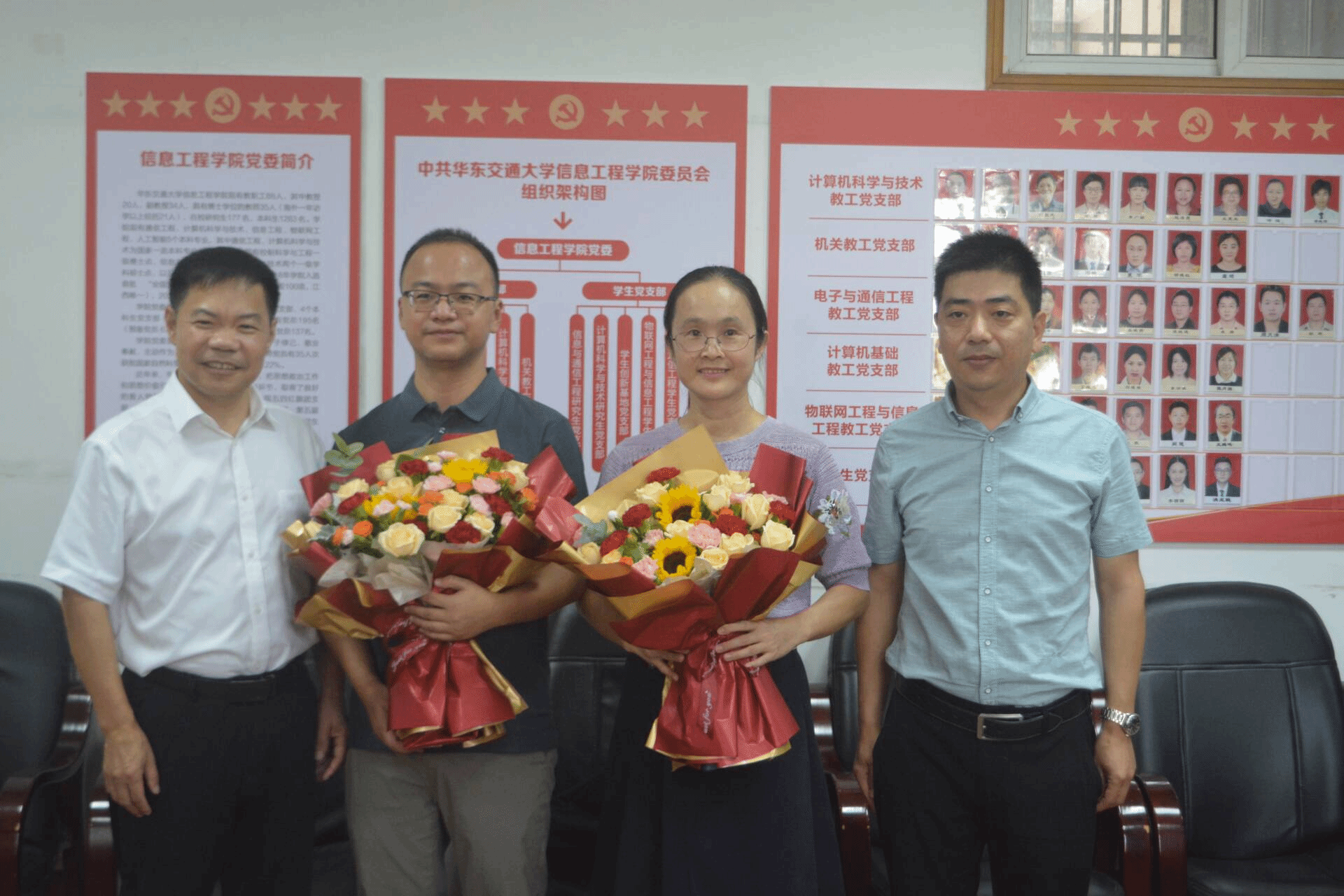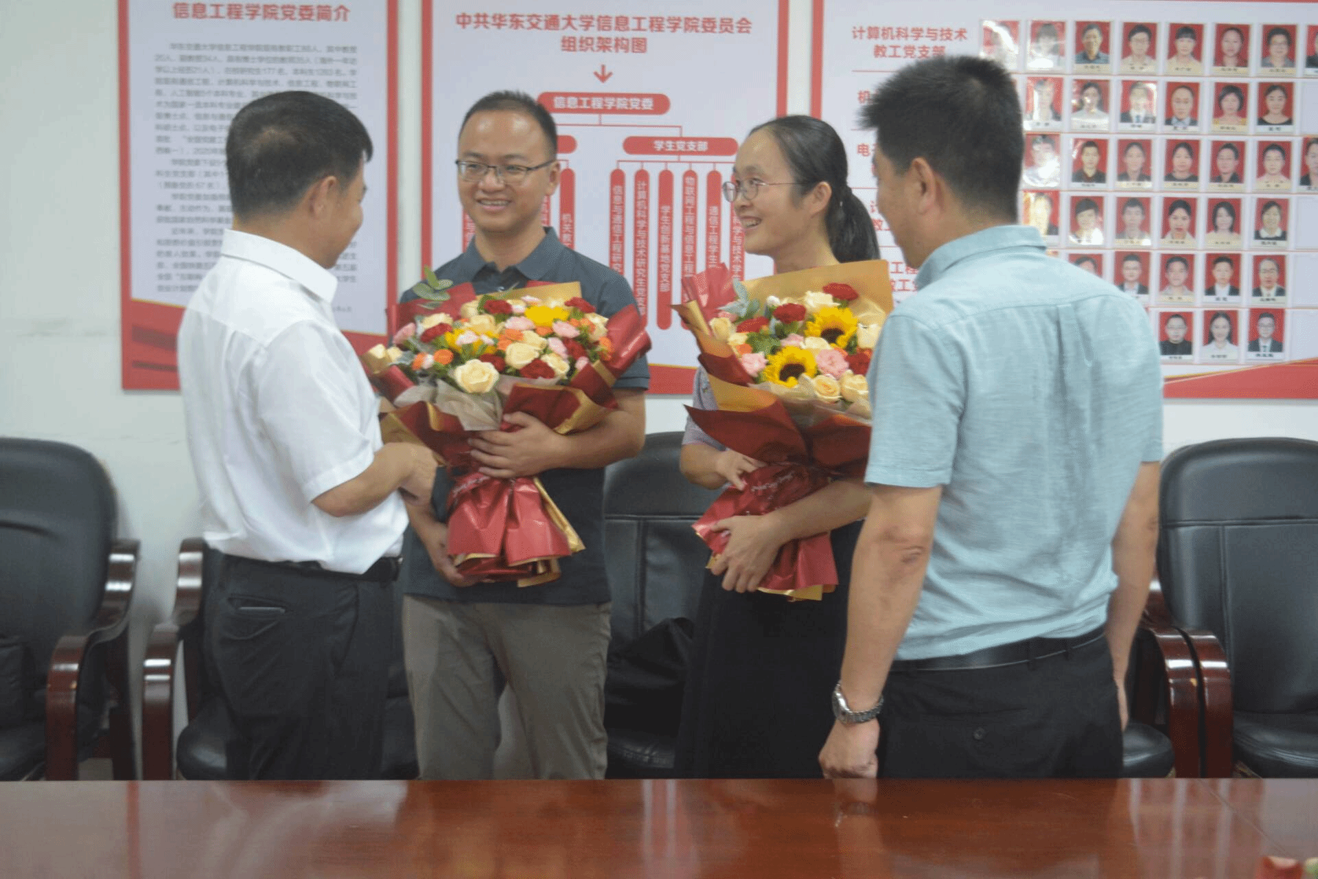 到场领导为两位优秀教师献上鲜花,致以节日的问候并合影留念