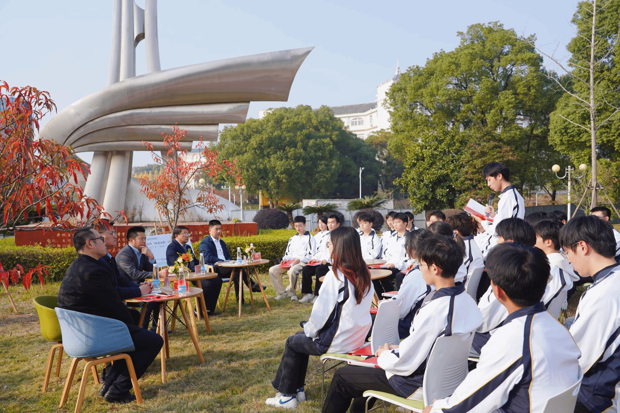 “徐校长,请问您是如何平衡行政工作和科研工作的呢?”“您如何看待土木学科未来的发展?”“您觉得应当如何平衡好学业和竞赛的关系?”在互动环节,面对同学们的疑问,徐长节耐心解答。他说,在人工智能时代背景下,知识的更新和技术的更迭在不断加快,要求我们主动适应变化,始终走在时代前沿,才能在竞争激烈的世界舞台上立于不败之地。他期望有爱爱