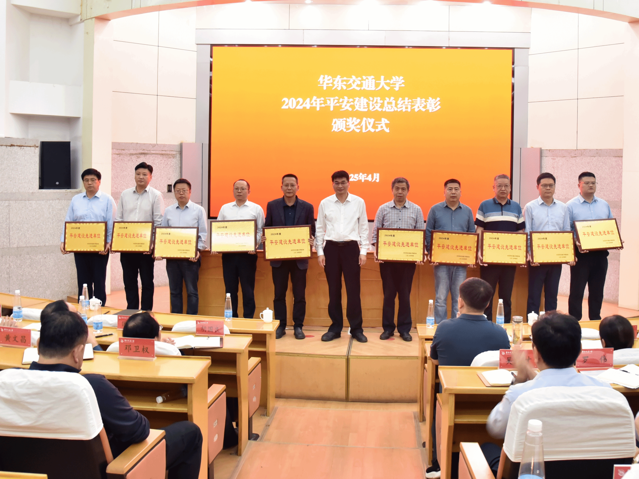 校党委委员、副校长欧阳志刚为2024年平安建设先进单位颁奖