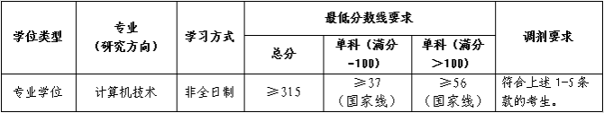 (5)计算机技术(非全日制)调剂要求考生一志愿报考专业与计算机技术专业相同或相近