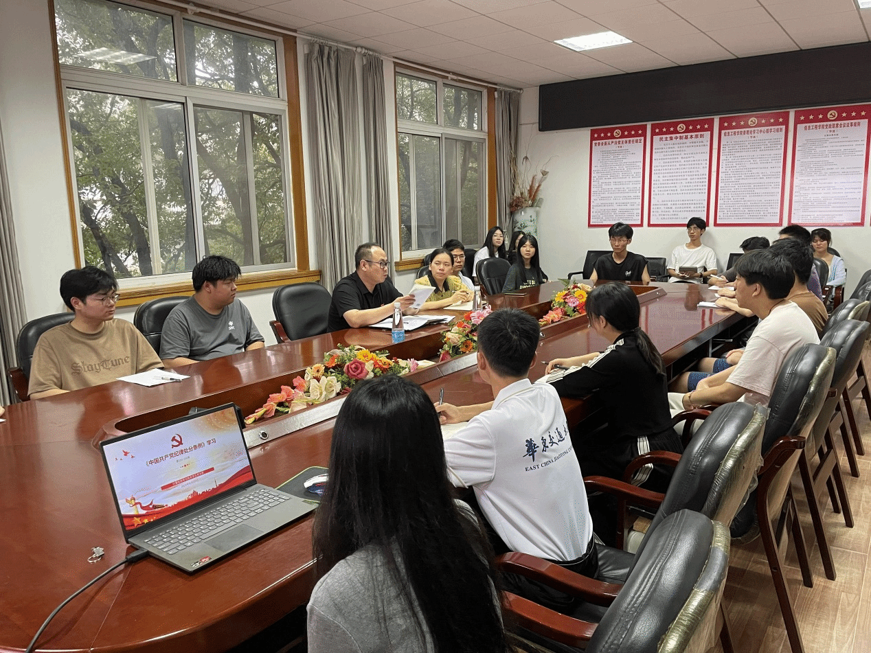 计算机科学与技术学生党支部开展党纪学习教育集中学习会,学院党委副书记冯荣刚同志列席参加并作点评指导,机关教工党支部书记廖龙霞同志陪同参加。