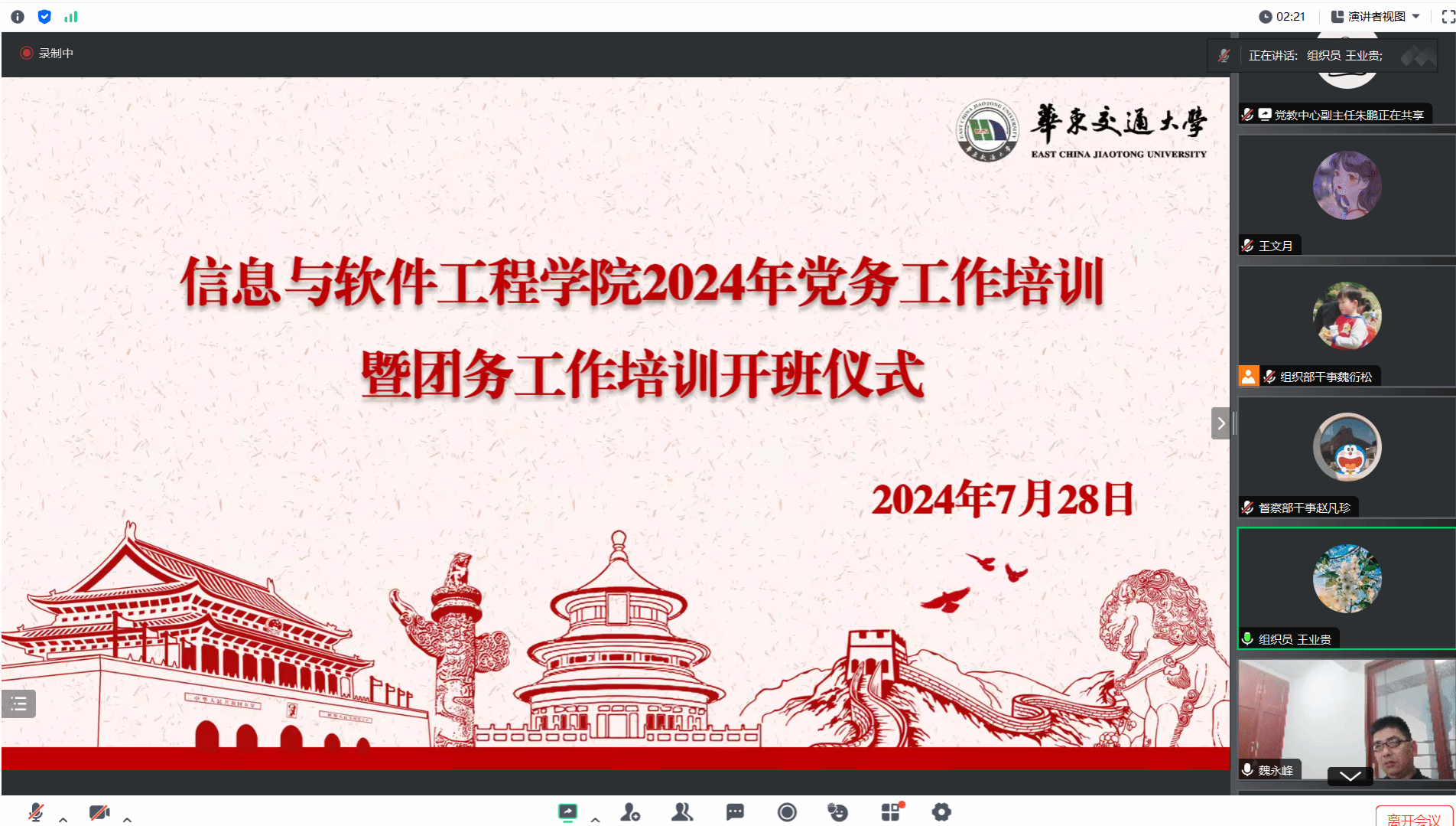举行2024年党务工作培训暨团务工作培训开班仪式,院党委书记魏永峰出席并作开班动员讲话。院党委副书记冯荣刚出席,开班仪式由院党委组织员王业贵主持。
