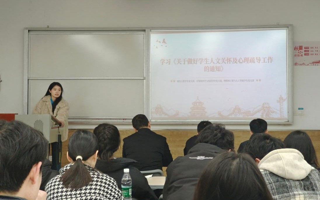 通信工程学生党支部书记、学院心理辅导员孙路平结合学校《关于做好学生人文关怀及心理疏导工作的通知》要求,号召全体学生党员同志要发挥先锋模范作用,加强学习,提升个人的心理素质和心理健康知识,关心关爱周围同学,积极主动与同学交流,敏锐发现一些苗头性的问题,并学会积极引导,帮助学生解决问题。