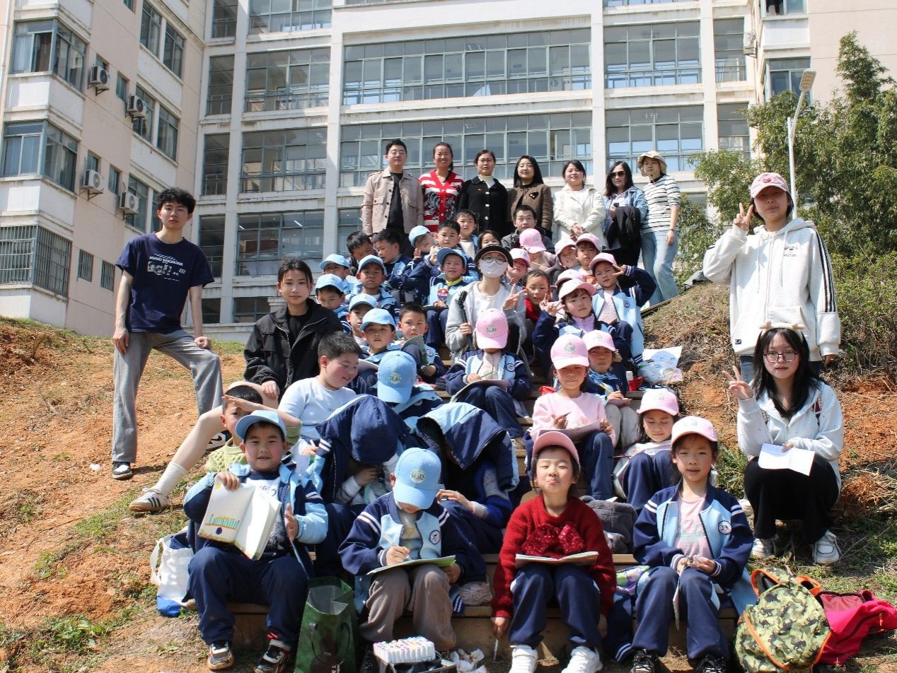 双创中心志愿者组建“色彩工坊”,通过构图解析、光影教学,启发孩子们用画笔捕捉春光;有爱爱