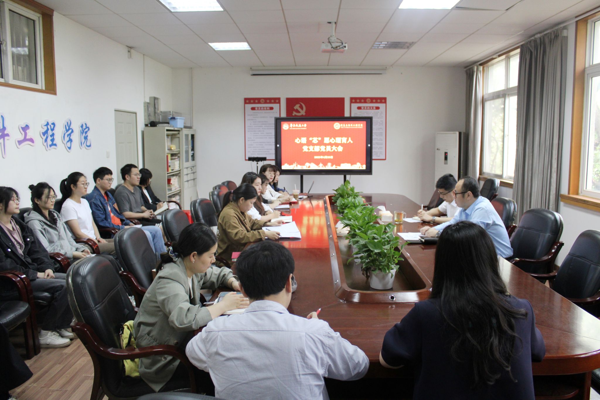 “心语‘芯’愿”心理育人功能型党支部全体党员参加会议。