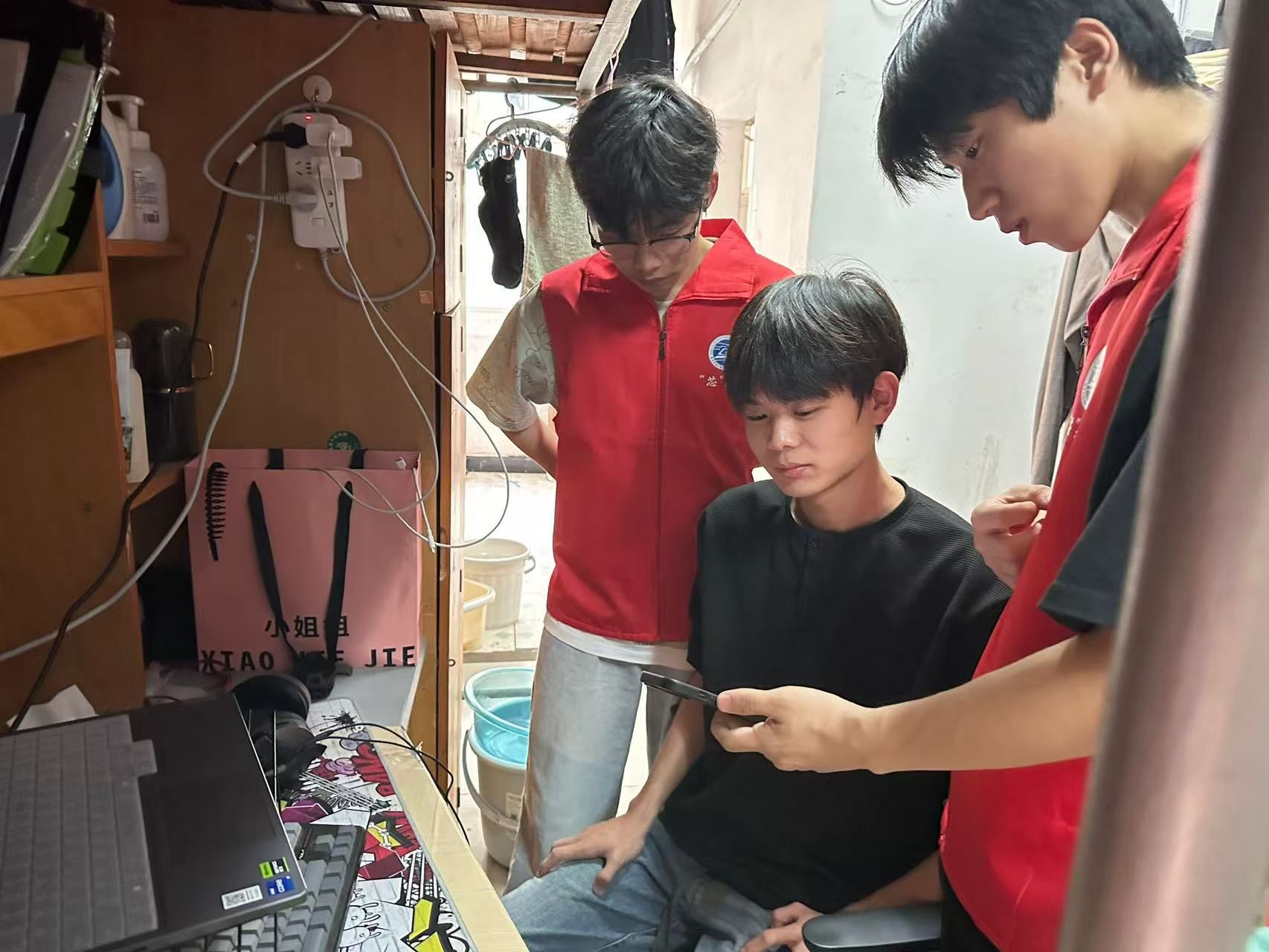 于2025年5月7日在学18栋、学42栋宿舍楼开展“党员+团员”结对模式宣讲活动,学院学生党员与入党积极分子结对组成宣讲团队,走进学生宿舍,将党团教育与资助育人有机融合,打通政策落地的“最后一公里”。