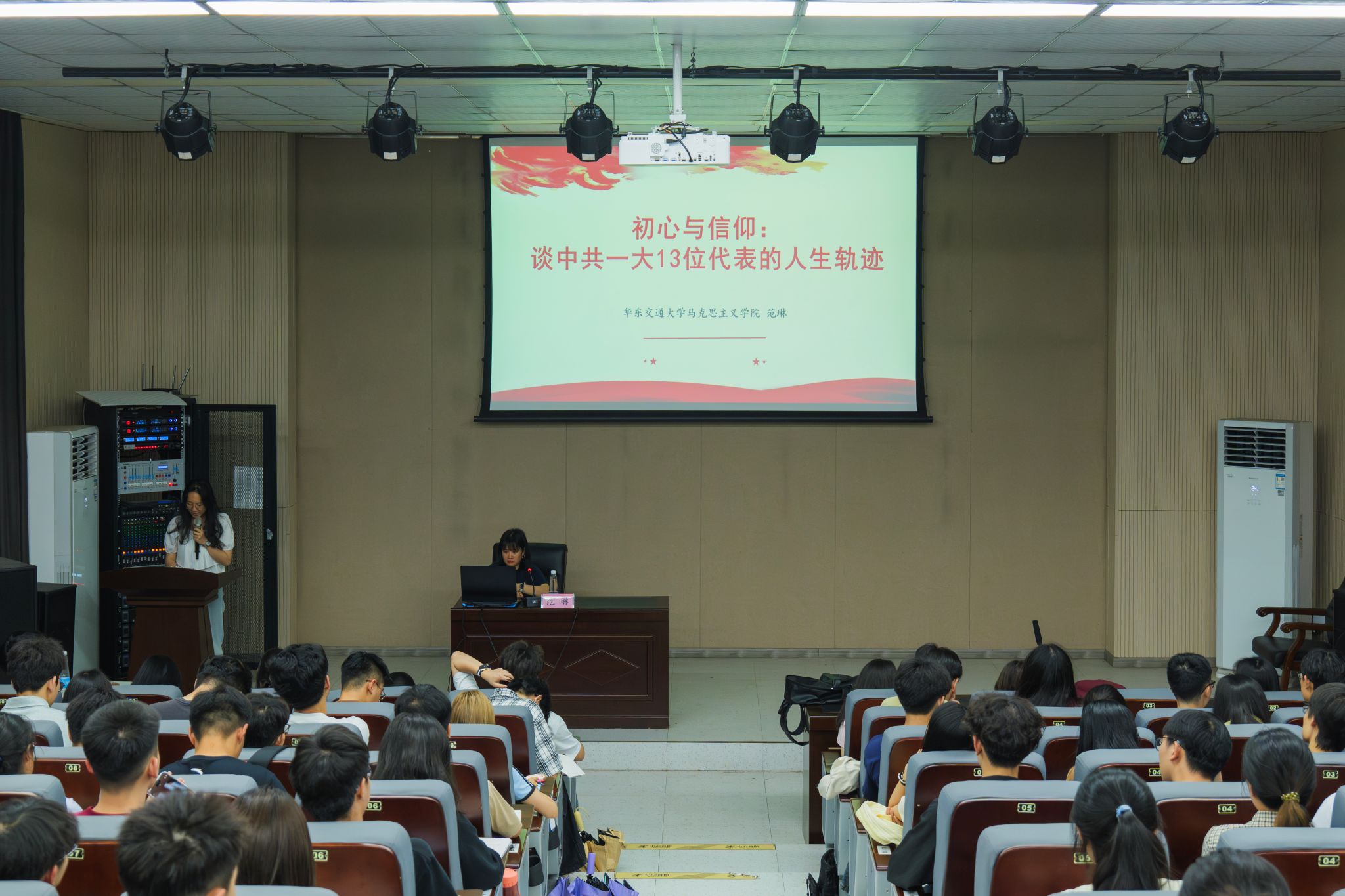 分党校于教五栋108报告厅举行第二期发展对象培训班党课的第四讲课程——《观中共一大13位代表的人生轨迹,谈中国共产党人的初心与使命》,此次课程由马克思主义学院教师范琳主讲,全体发展对象参加。