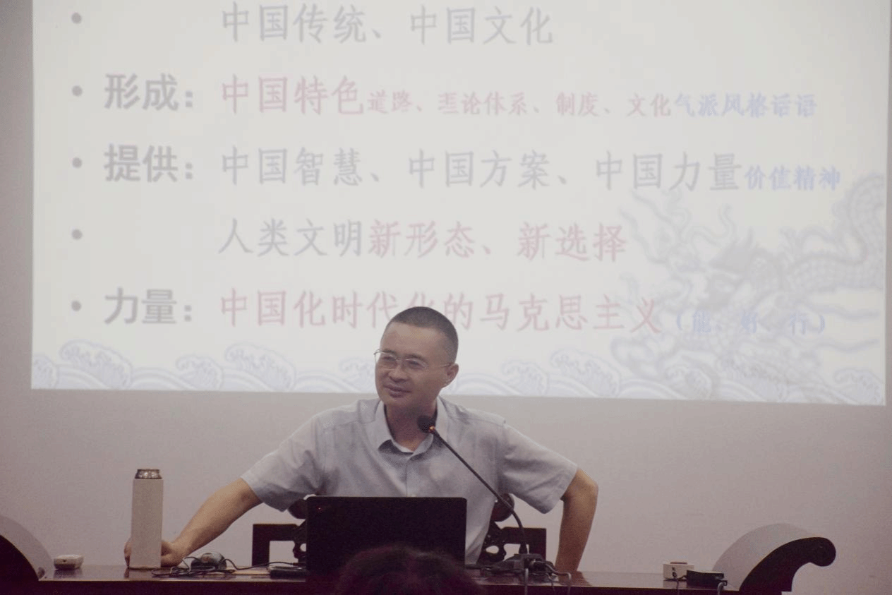 开班仪式后,图书馆馆长石初军为全体学员讲授第一讲《深刻理解“两个结合”,把握中国特色社会主义的根和魂》。