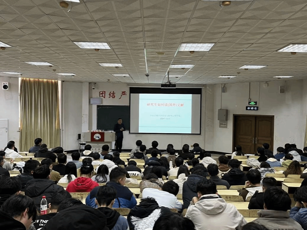副院长官雪辉教授在南图101教室为2023级软件工程专业及2024级全体研究生开展学术诚信教育与文献阅读培训。