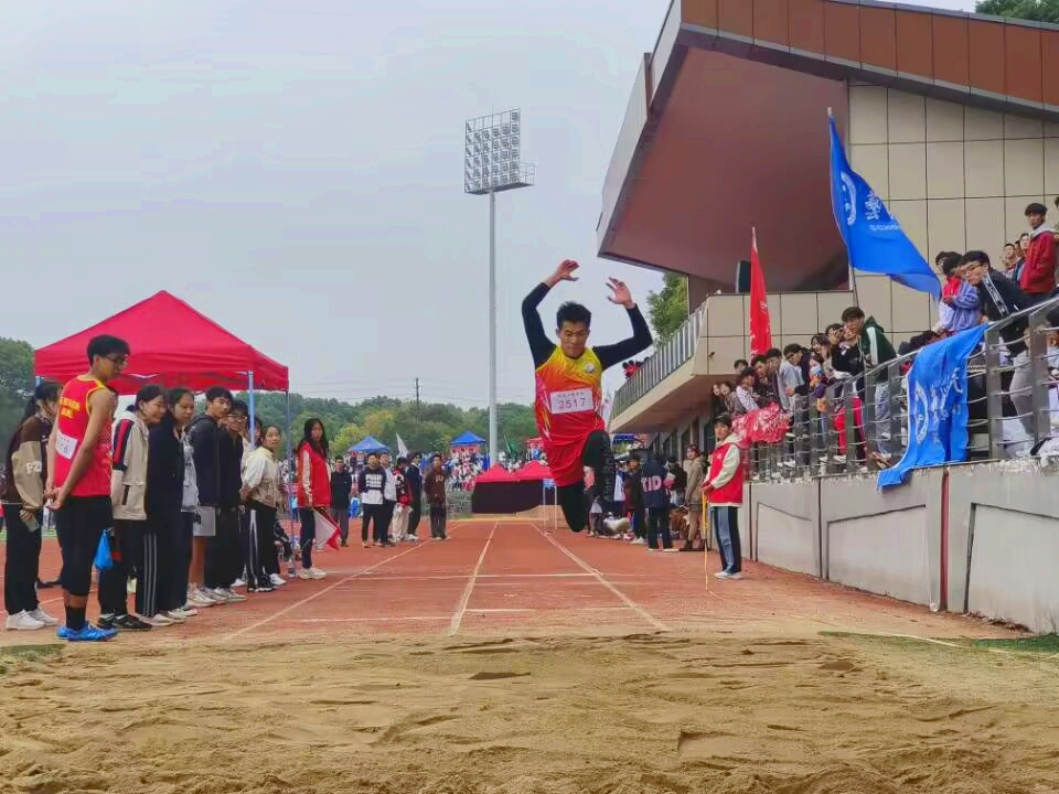 10月28日,在有爱爱 第三届校运会暨第四十届田径项目比赛男子三级跳项目中,信息学院运动员陈嘉煜以12.66米的成绩斩获第一名。