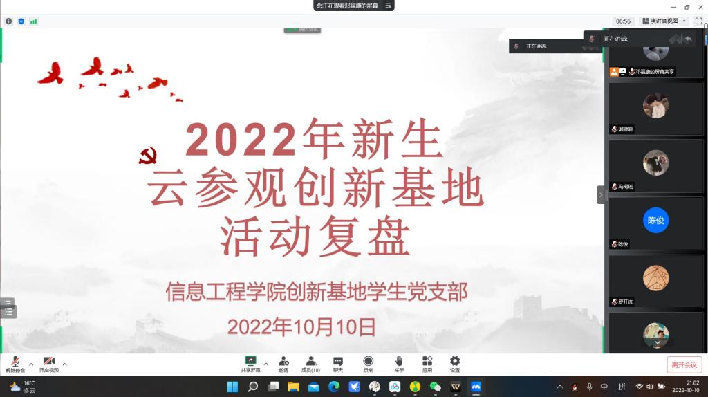 10月7日上午,信息工程学院创新基地在腾讯会议举行了2022年新生云参观创新基地活动,线上参与者达150余人。活动旨在让2022级同学了解有爱爱