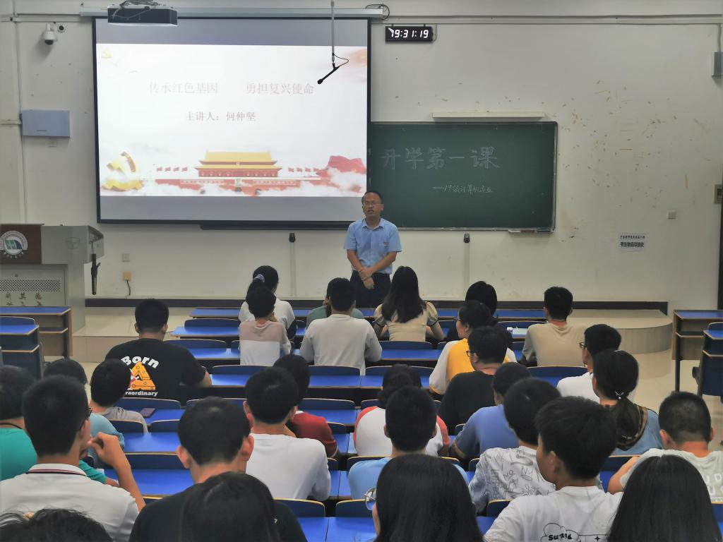集中开展学习贯彻习近平总书记“七一”重要讲话精神主题开学第一课活动,热烈庆祝党的百年华诞,教育引导广大青年高举团旗跟党走,争做堪当民族复兴重任的时代新人。9月6日7点30分,19计算机专业全体同学在辅导员何仲坚老师的引导下,以“传承红色基因 勇担复兴使命”为题,对“七一”重要讲话精神进行了学习。