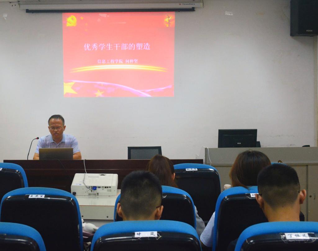 8月30日,信息学院第十期学生骨干培训圆满结束,培训以线上线下结合的形式开展,课期为三天。此次培训分为理论讲述、培训考核及部门负责人素拓三个部分。院党委副书记何仲坚、党委组织员黄清华、团委副书记艾国金、杨青出席,第二十一届信息工程学院学生会及团属学生组织全体成员、信息工程学院学生党员教育管理中心负责人及党员、各支部宣传委员及带班党员(团员)参与培训。