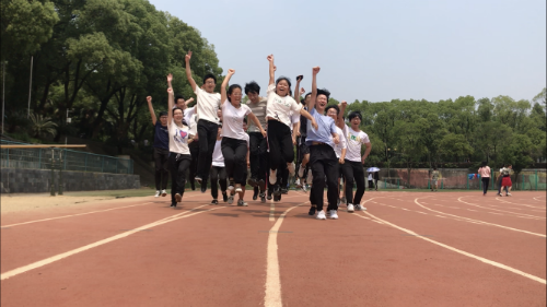 活动结束后,同学们来到田径场,进行了简单的百米赛跑项目,并于田径场合影留念。