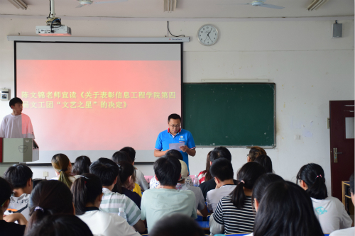 会上,陈文锦宣读《关于表彰信息工程学院第四届文工团“文艺之星”的决定》,杨青宣读《关于公布信息工程学院第三届文工团确定人员名单的公示》。