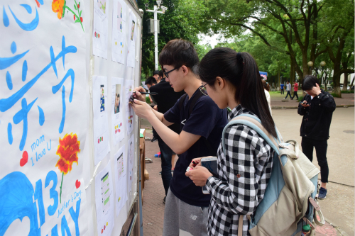 为了让同学们感受亲情的珍贵,延续中华民族的传统美德。5月11日,信息学院于南区一食堂前举办“感春晖寸草,扬赤子之心” 的母亲节主题活动。