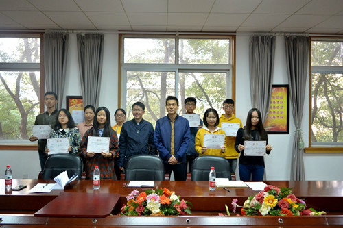 黄晓鹤和黄清华共同为本届信息学院新闻小组成员颁发聘任证书。