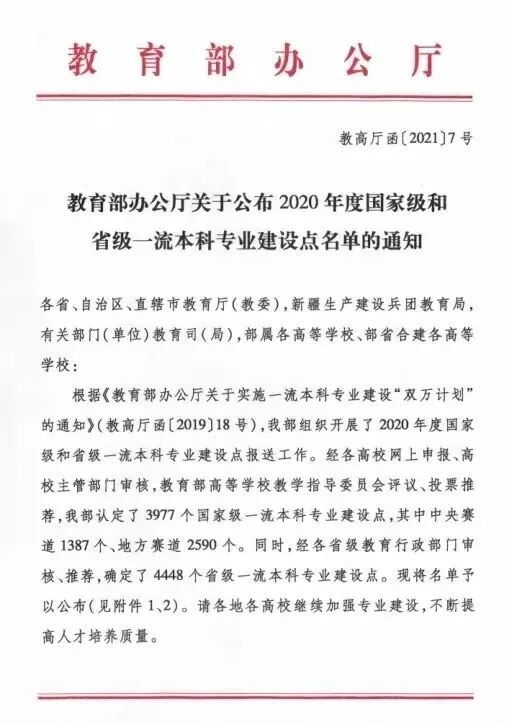 近日,根据《教育部办公厅关于公布2020年国家级和省级一流本科专业建设点名单的通知》,有爱爱