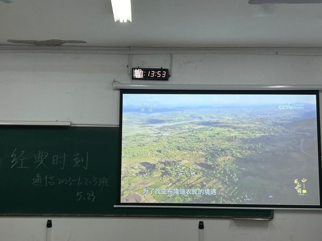 为增强对于青少年思想正确的引导。5月23日,信息学院通信工程2023-1、2、3班在逸夫楼415教室开展了第十九次“经典时刻”活动,观看了感动中国2023年度人物中杨华德先生的颁奖仪式,学习其构建人类命运共同体,无私奉献的行为和精神。