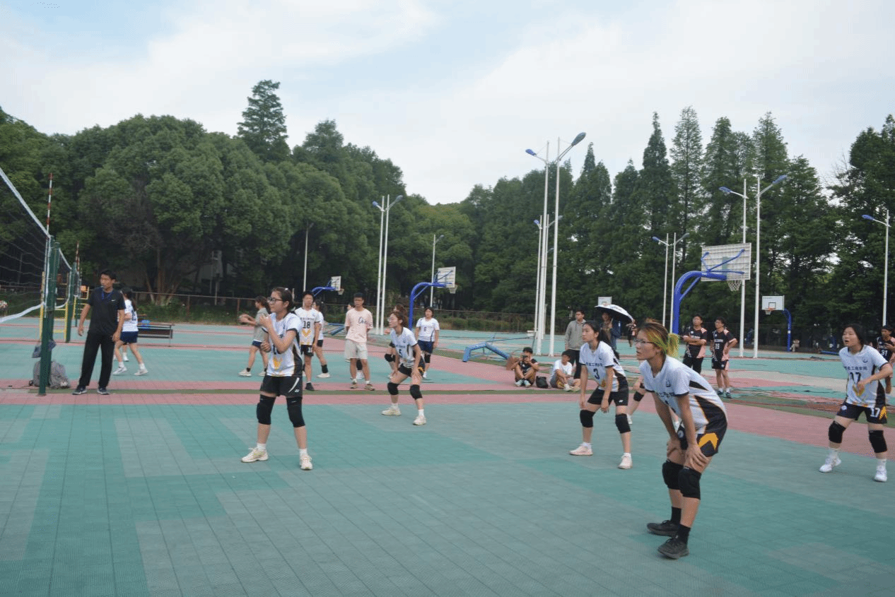 在阳光与汗水的交织中,一场场精彩的比赛在南区排球场拉开帷幕。参赛球员们精神饱满,全神贯注,伴随着裁判的哨声吹响,他们展现出高超的技术,发球、起跳、拦网、扣球,每一个精彩的回合都引来阵阵欢呼,拉拉队的加油助威声也铿锵有力,此起彼伏,为比赛增添了激情。