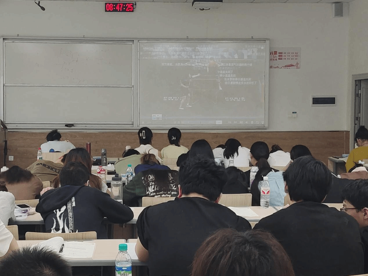 2023级通信工程专业在教25栋220教室开展第二十九次“经典时刻”活动,组织观看视频《东瀛逐浪:剑锋与意志的对决》,共同领略樊振东在巴黎奥运会男单八进四比赛中逆转强敌的经典战役。
