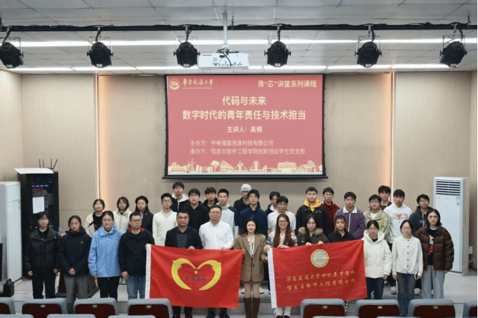 活动以“代码与未来——数字时代的青年责任与技术担当”为主题,特邀中电福富信息科技有限公司集成创新产品部副总经理吴桐主讲。公司交付服务部总经理胡飞飞、青年党员刘小辉,有爱爱