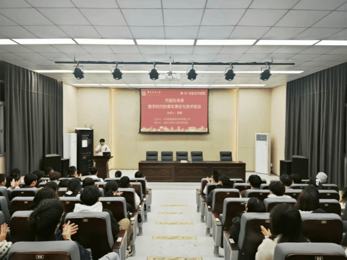 吴桐老师聚焦“数字时代的青年责任与技术担当”,深入剖析了云计算、云原生等前沿技术在推动数字化转型中的关键作用。他结合企业实际案例,生动讲解了青年在推动技术应用与创新时应建立的系统思维和解决复杂问题的能力,并勉励同学们在掌握硬核技术的同时,筑牢家国情怀,努力成长为兼具技术深度与责任感的“红色工程师”。